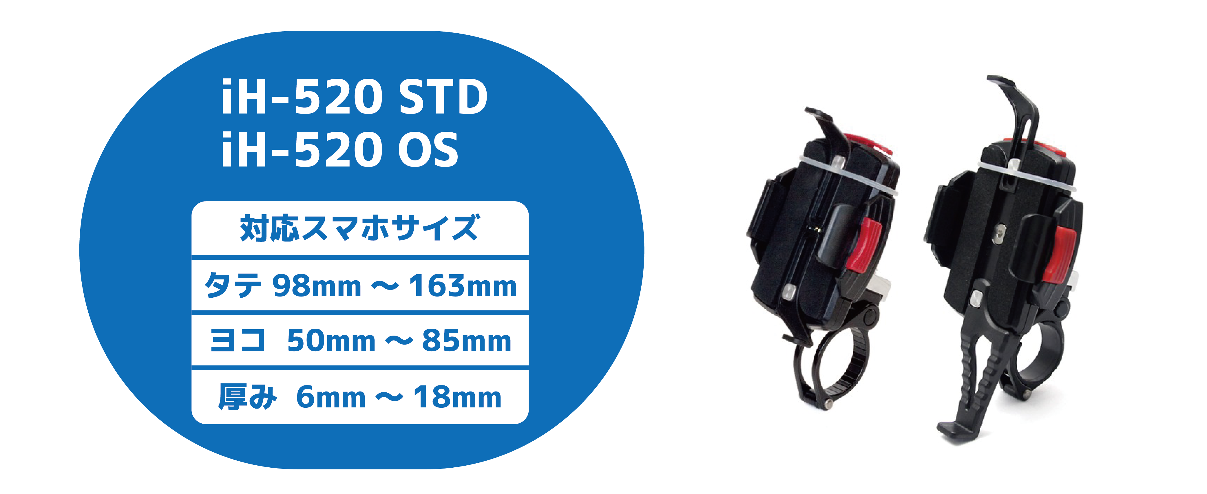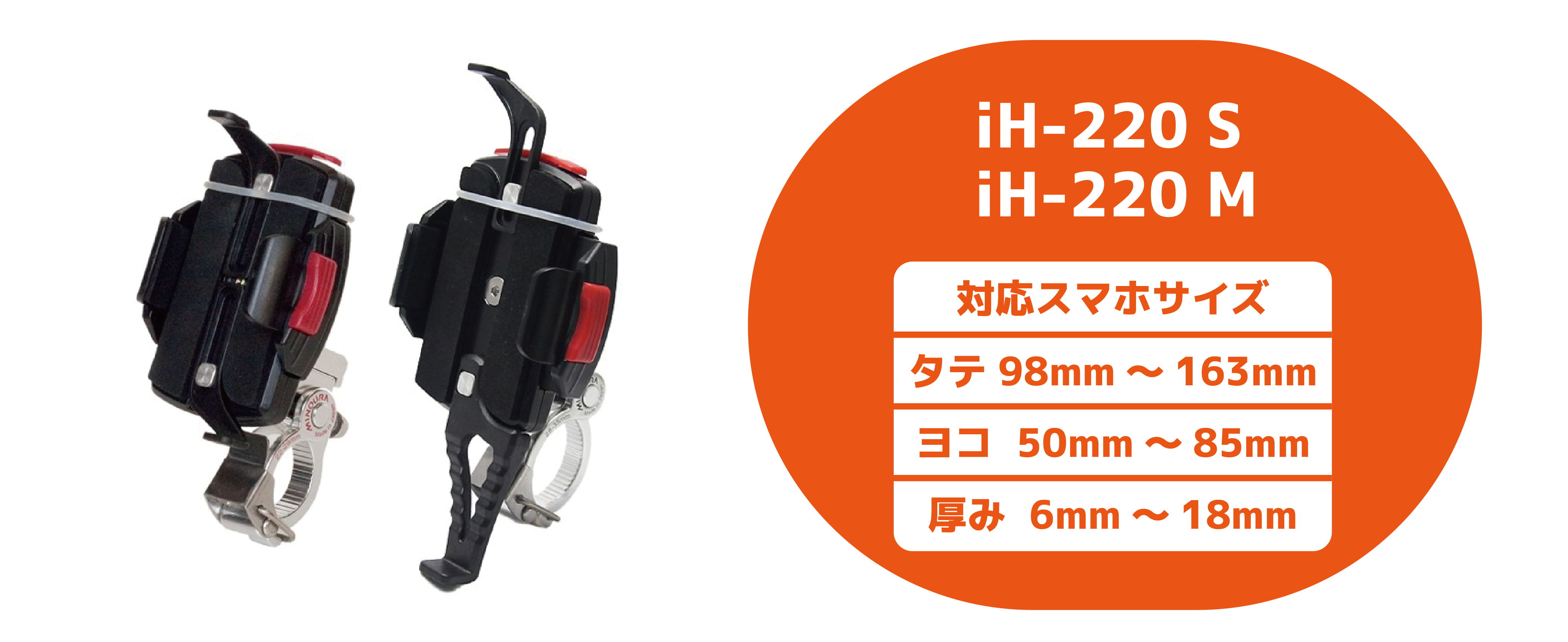 iH-220シリーズ: スタンダードなモデル。幅広いスマートフォンに対応。工具不要のワンタッチ取り付けが可能。