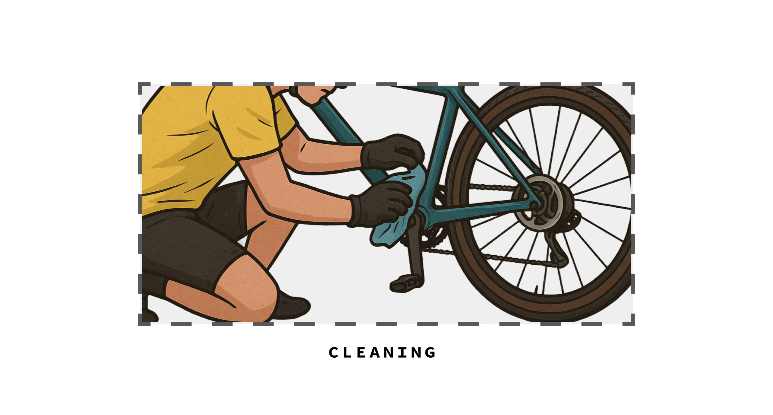 汚れに気づいた際は、柔らかいブラシや清潔な布を使用し、BBシェル周辺、クランクアームとの嵌め合い部分、BBカップの外側などを拭き上げてみましょう。落ちにくい頑固な汚れには、自転車用クリーナーやパーツクリーナーを少量使用することも有効です。(BB内部に液体が流れ込まないよう注意して作業してください。)もちろん清掃後は水分をしっかり拭き取り、乾燥させましょう。